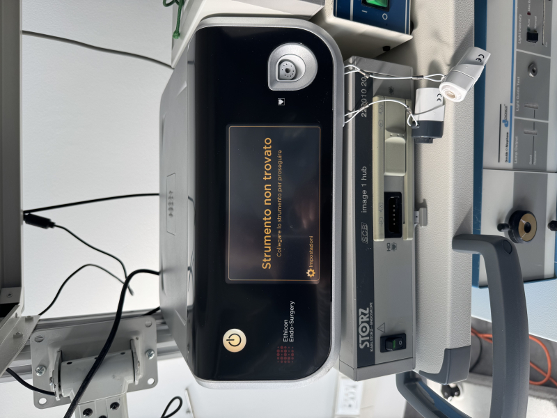 Vendo esclusivamente per passaggio ad altro sistema di sintesi dei vasi sanguigni GENERATORE ETHICON GEN 11 completo di pedaliera, mai usata ed ancora nella confezione originale, cavo blu per forbice focus harmonic, forbice focus, scalpello blade harmonic, cavo grigio per pinze harmonic, pinze harmonic da 5 mm 13-27-36 cm, pinza enseal Super Jaw, Pinza Enseal 5 mm 27 cm, cavo di alimentazione