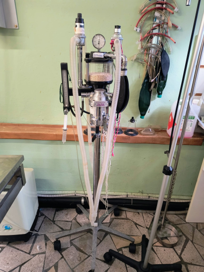 Prezzo: € 1000Vendo stativo anestesia completo dí flussimetro vaporizzatore e circuito calce sodata.