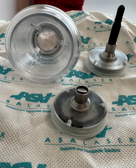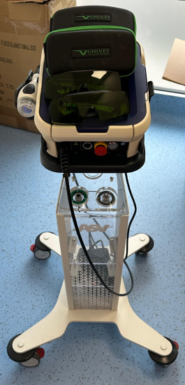 Vendesi attrezzatura ASA laserterapia M-VET con lente collimata completa di carrello e tutti gli accessori anche per uso portatile.