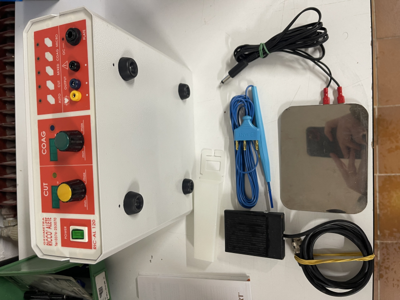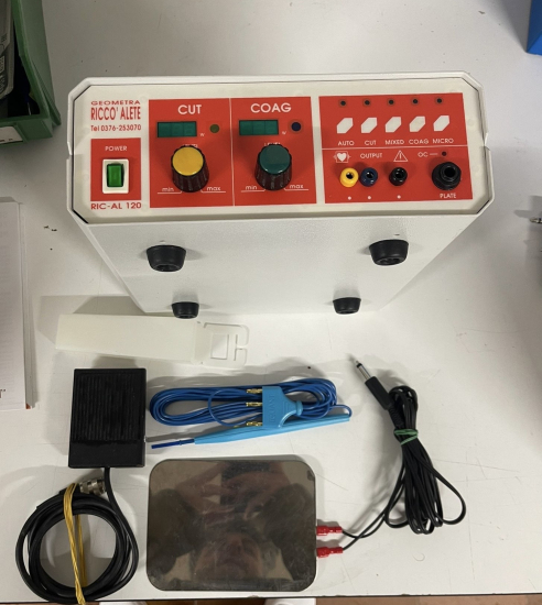 Elettrobisturi Mono-Bipolare a radiofrequenza con manipolo sterilizzabile con puntale, cavo per elettrodo neutro, elettrodo in acciao, pedale, cavo di alimentazione – 120W LED (solo con accessori monopolari)
