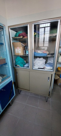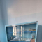 n. 1 armadio azzurro con vetri e cassetti h 170 cm, lunghezza 130 cm, profondità 45 cm